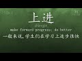 Listen to native mandarin speakers saying "上进" and the example: "一般来说,学生们在学习上进步很快。", it means "Generally speaking, the students have made quick progress in their studies."